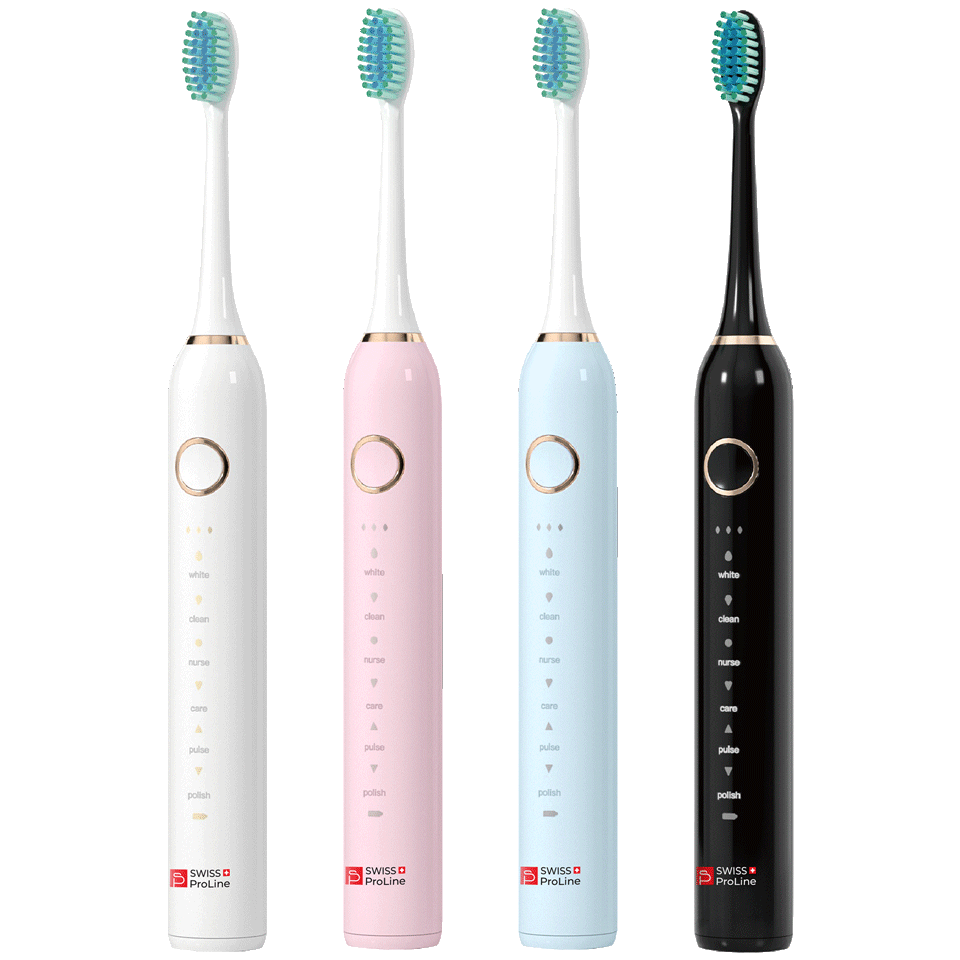 Prenez soin de vos dents et de vos gencives avec la brosse à dents électrique Swiss ProLine, conçue pour offrir un nettoyage en profondeur tout en protégeant votre bouche.