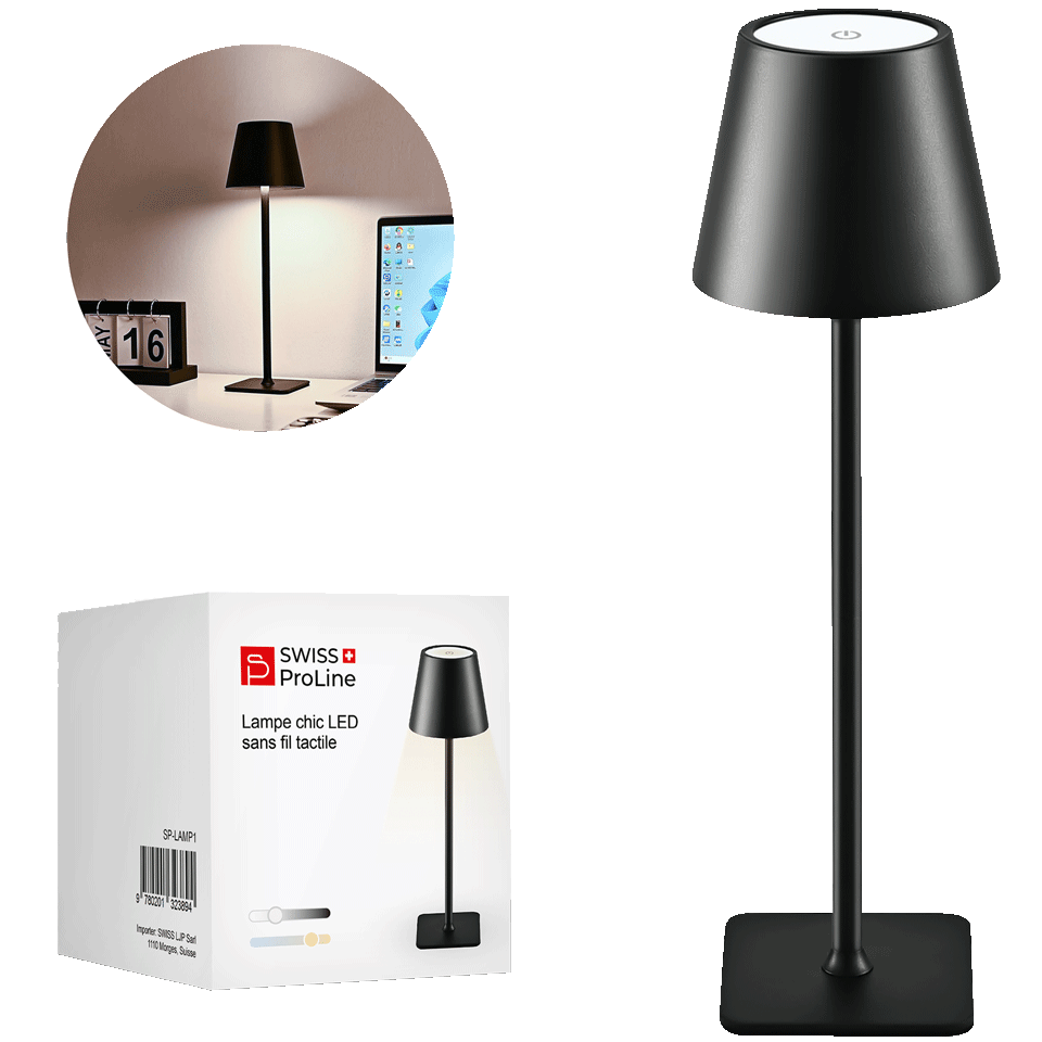 Apportez une touche d’élégance et de modernité à votre intérieur avec la lampe chic LED sans fil tactile de Swiss ProLine.