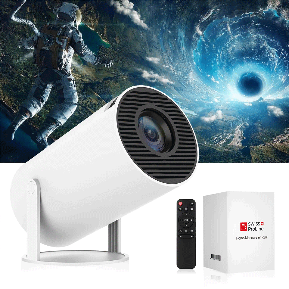 Découvrez le projecteur portable 4K Swiss ProLine, votre allié idéal pour transformer chaque espace en véritable salle de cinéma.