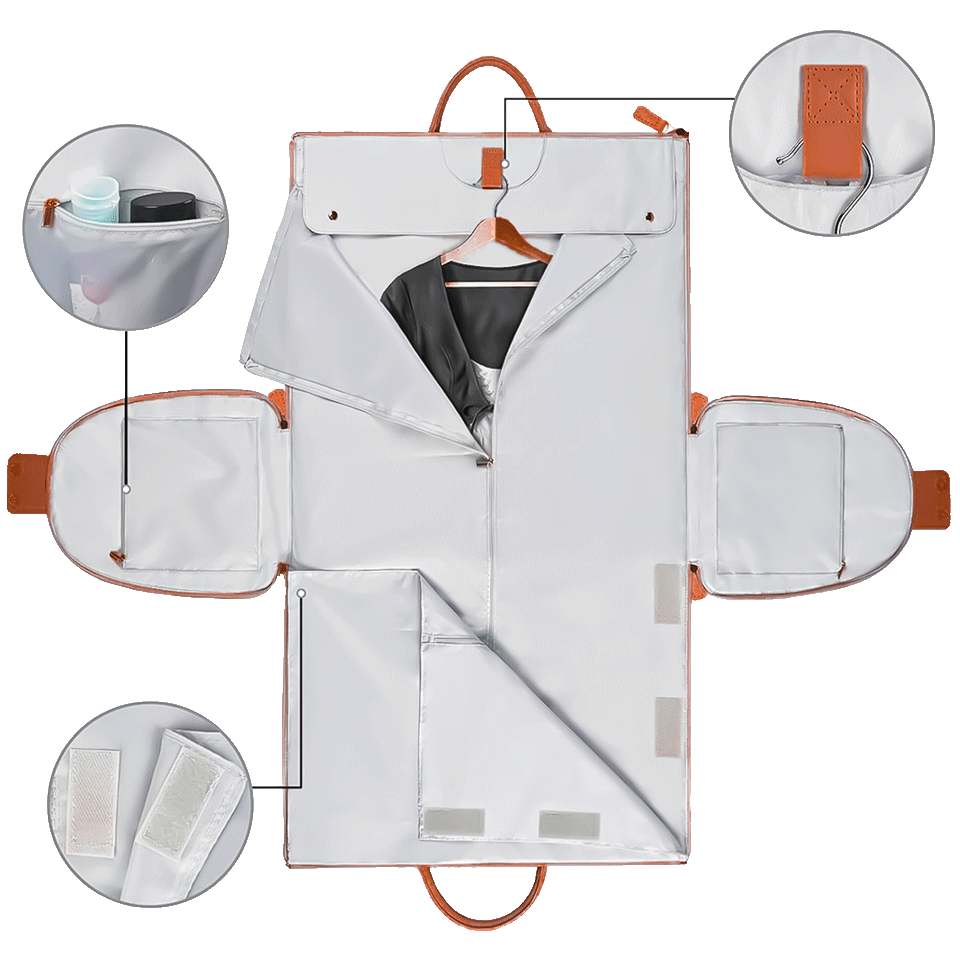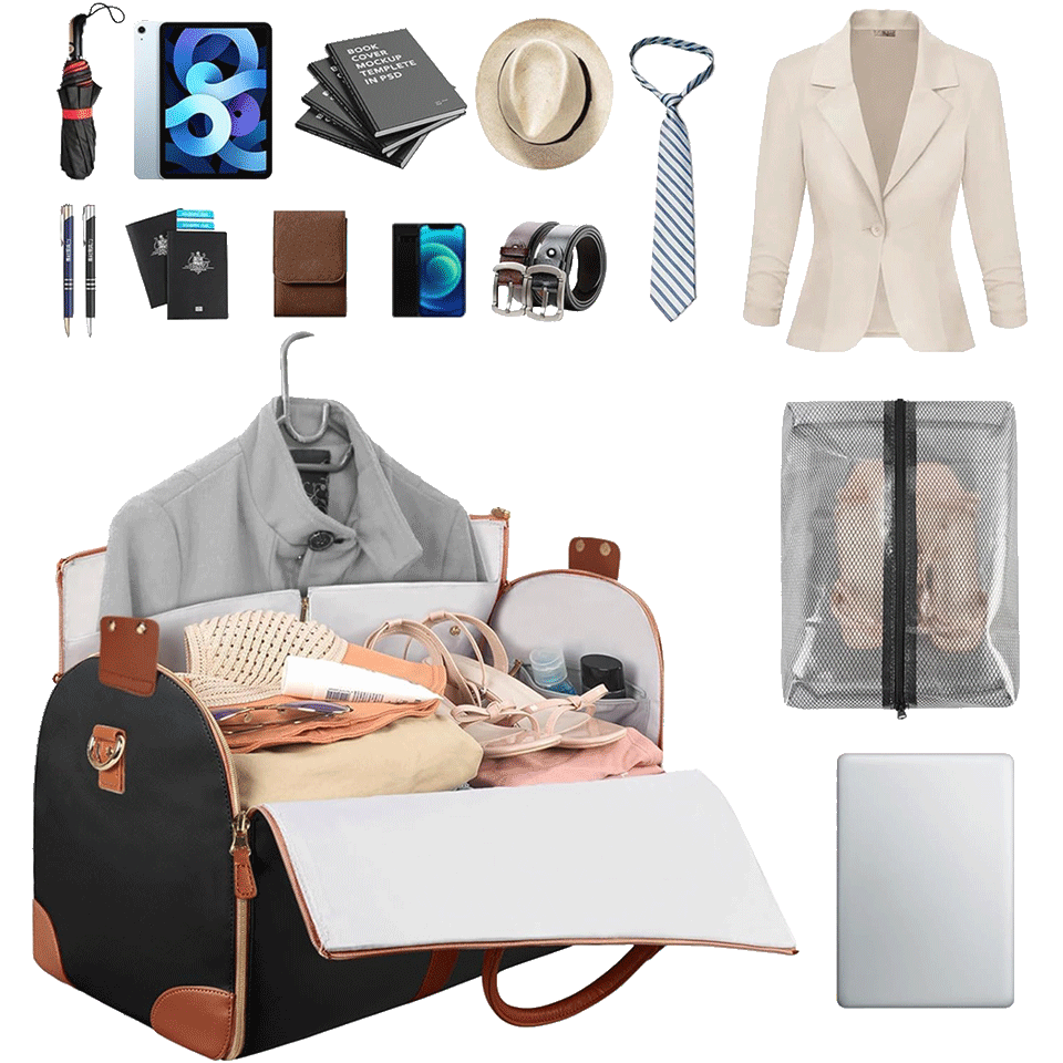 Organisation parfaite : multiples compartiments pour vêtements, chaussures, accessoires et objets personnels.